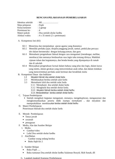 Rpp 1 lembar mapel fiqih kelas 1, 2, 3, 4, 5, 6 revisi 2020 khusus mi.